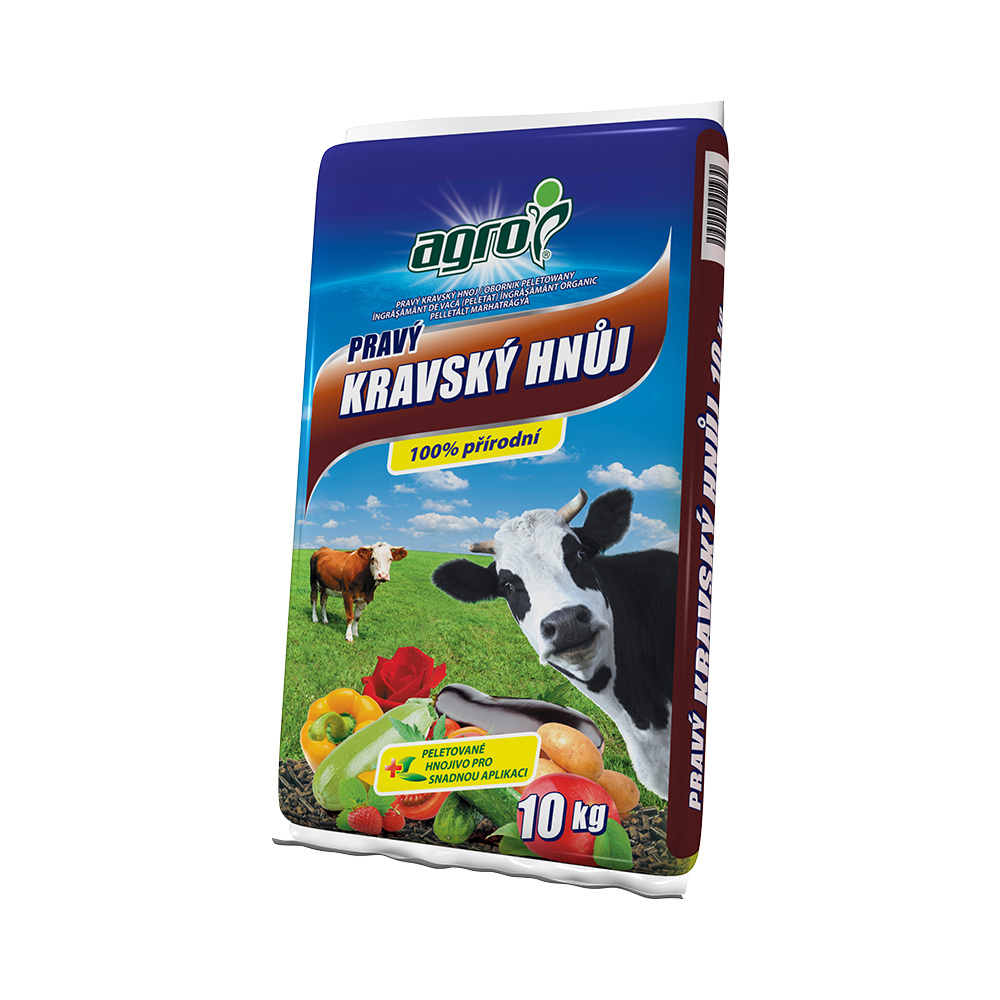 Agro Pravý kravský hnůj je organické hnojivo vyráběné z kravského hnoje pomocí procesu sušení a lisování. Granulovaná forma hnojiva usnadňuje manipulaci.