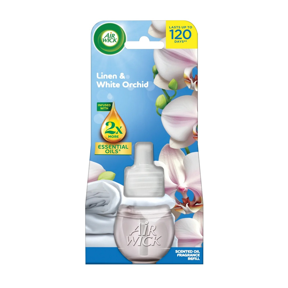 Náplň Air Wick Essential Oils Prádlo a bílá orchidej (19 ml) je určena pro elektrické osvěžovače vzduchu a přináší do vašeho domova svěží a jemně květinovou vůni.