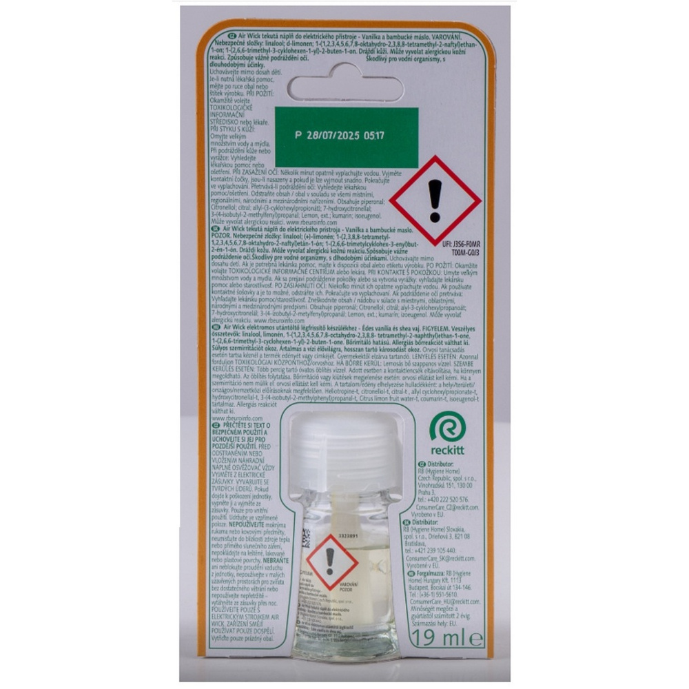 Air Wick Essential Oils Vanilla & Shea Butter - Vanilka a bambucké máslo, elektrický osvěžovač náhradní náplň 19 ml