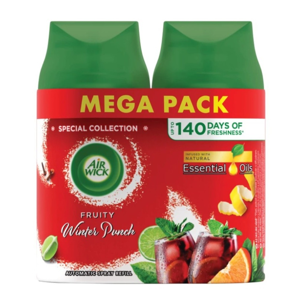 Vytvořte doma sváteční a útulnou atmosféru s náhradními náplněmi Air Wick FreshMatic Winter Punch.