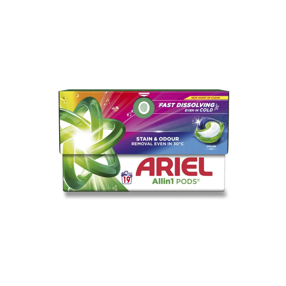 Ariel All in 1 Pods Color gelové kapsle na praní na barevné prádlo 19 kusů
