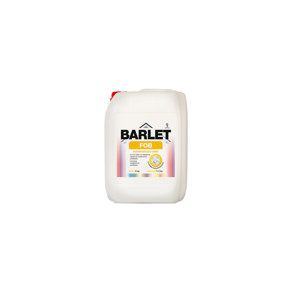 Barlet FOB PRO V4019F hydrofobizační nátěr odpuzuje vodu ideální pro dodatečné vytvoření povrchu, který odpuzuje dešťovou vodu – tzv. hydrofobizaci. Vhodný zejména pro zvýšení vodoodpudivosti silikátových a vápenných barev a betonu.