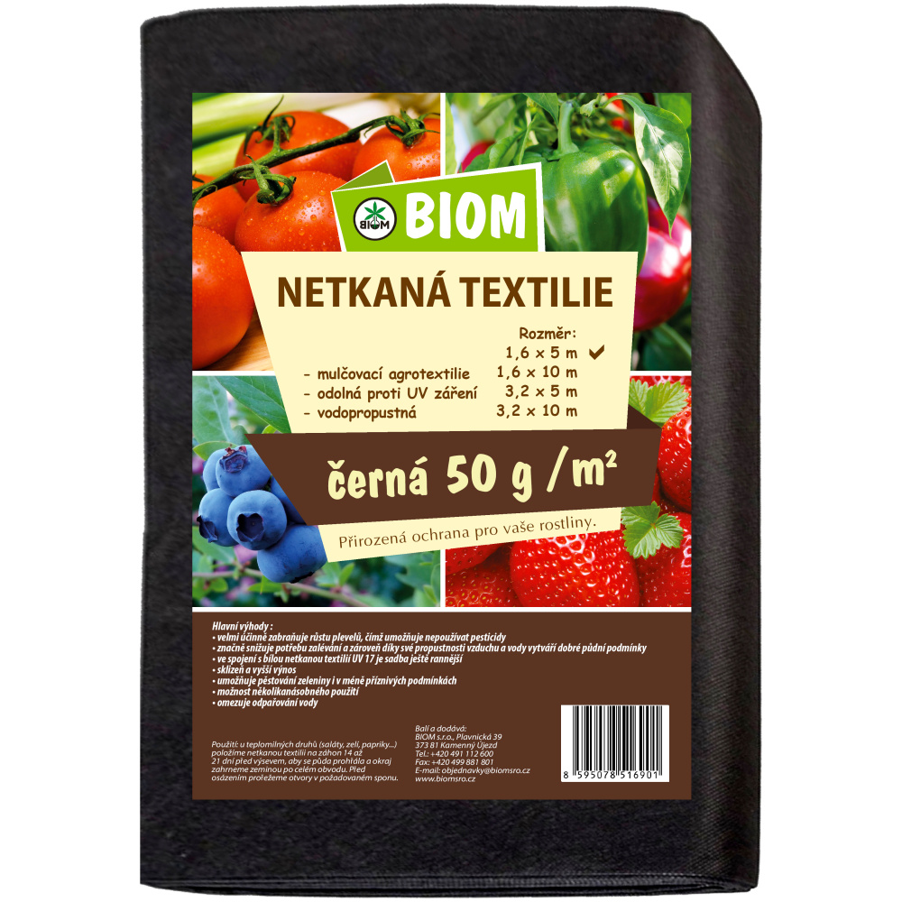 Biom netkaná textílie černá 17 g/m² velikost 1,6 x 5 m