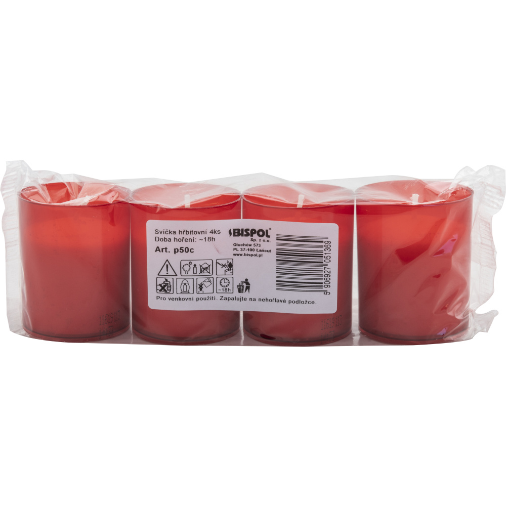 Bispol hřbitovní svíčka velká bez krytu, červená, balení 4 ks