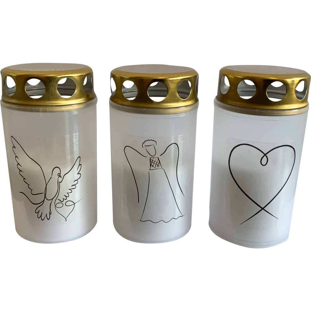 Tradiční hřbitovní svíčka Vatikánka s motivem. Mix druhů dle skladové dostupnosti, motiv nelze vybrat.