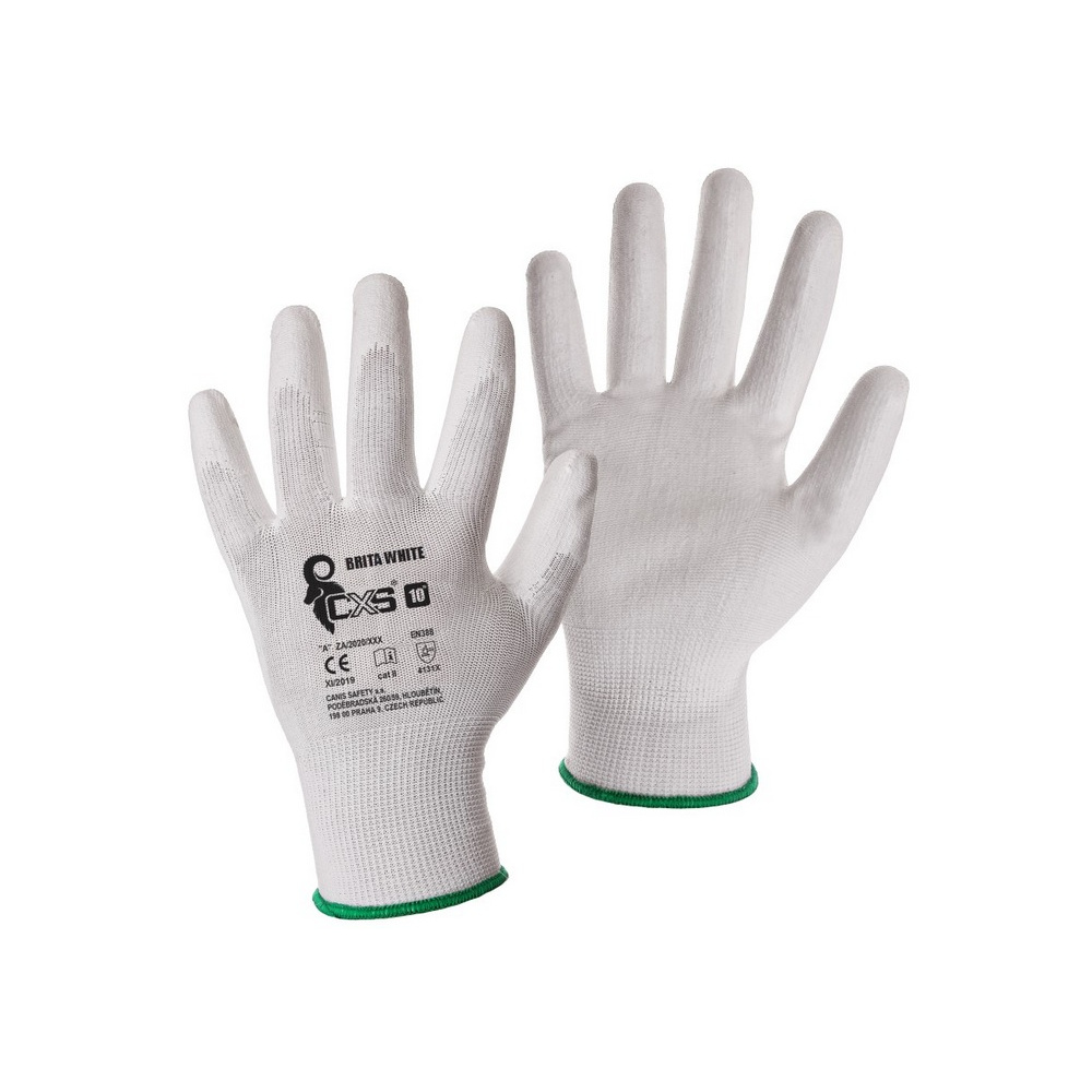 Brita CXS White pracovní rukavice, bílé, máčené v polyuretanu, velikost 7, 1 pár
