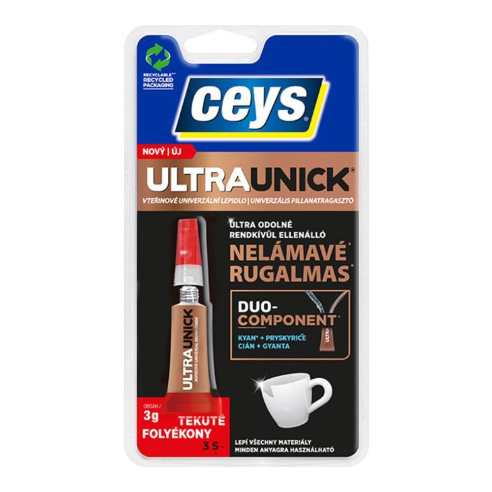 Ceys Ultraunick je rychleschnoucí univerzální vteřinové lepidlo určené pro expresní opravy a drobné práce.