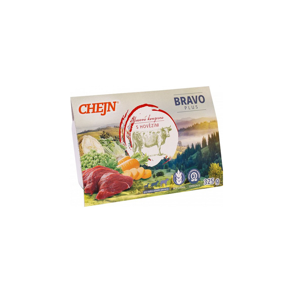 Chejn Bravo PLUS s hovězím a zeleninou pro malé a střední psy, 325 g