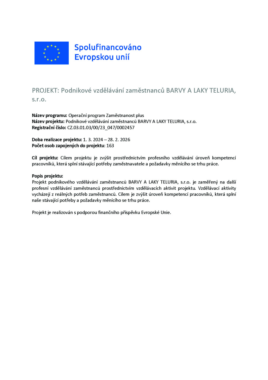 Podnikové vzdělávání zaměstnanců BARVY A LAKY TELURIA, s.r.o.