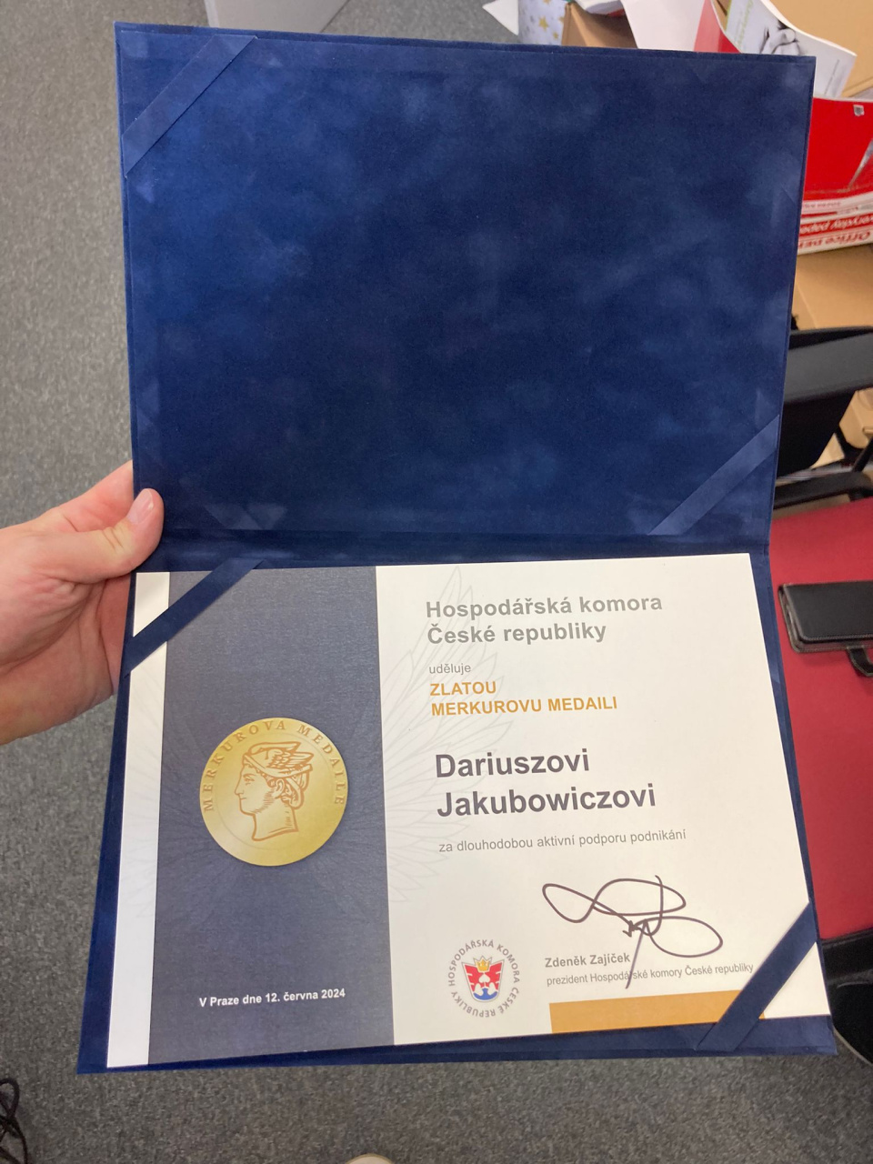 Získali jsme Merkurovu medaili za dlouhodobou aktivní podporu podnikání a medaili za podporu řemesla.