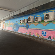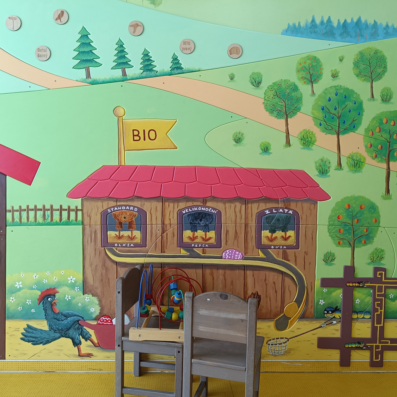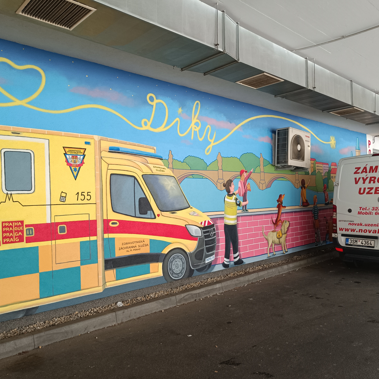 Autorem maleb je Libor Škrlík, s námětem mu pomáhaly děti i personál celé nemocnice, každý příběh na stěnách je osobní, malovaný s citem a vtipem.