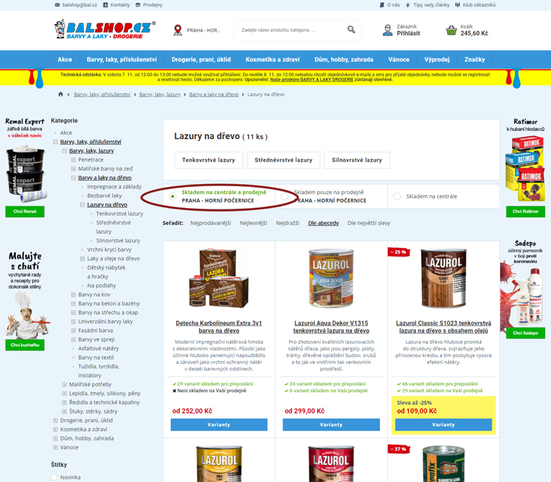 Zároveň můžete vybírat i z produktů, které jsou dostupné pouze na vybrané prodejně. Například výprodejové položky, které už nemáme na hlavním centrálním skladě a je na prodejně posledních pár kusů.