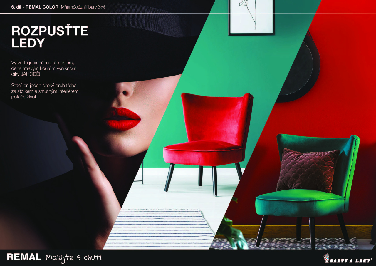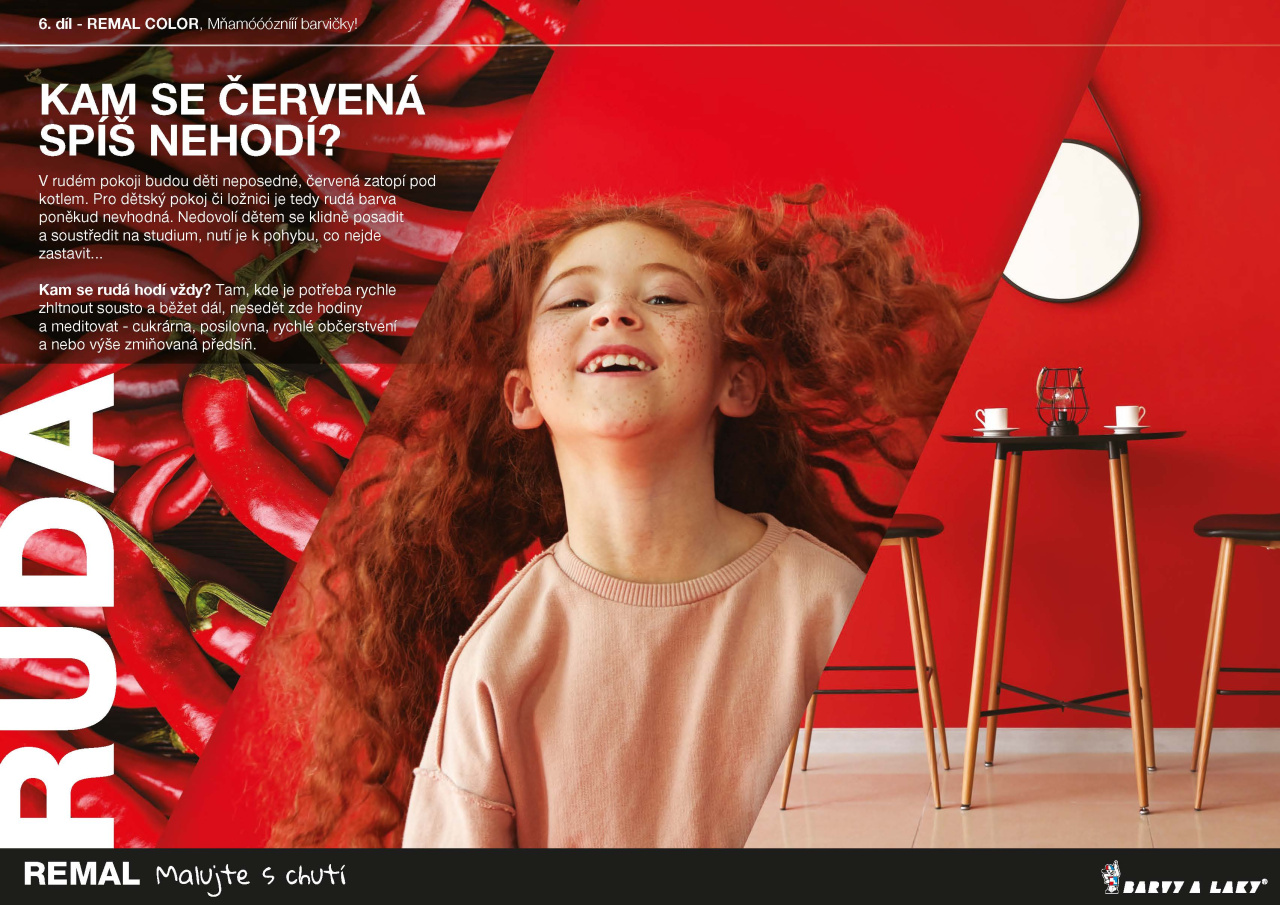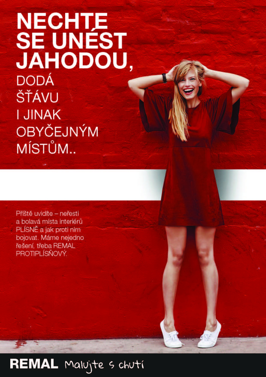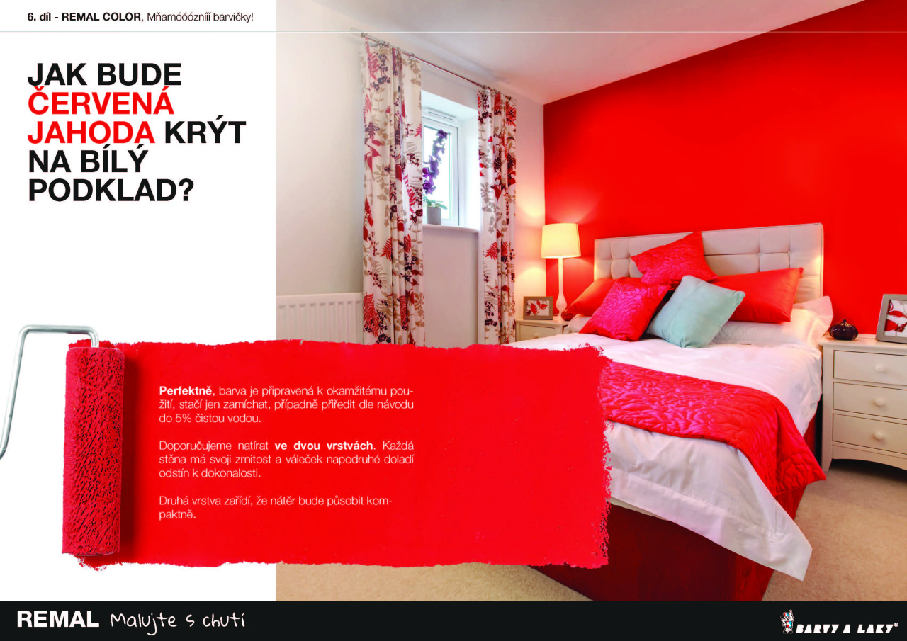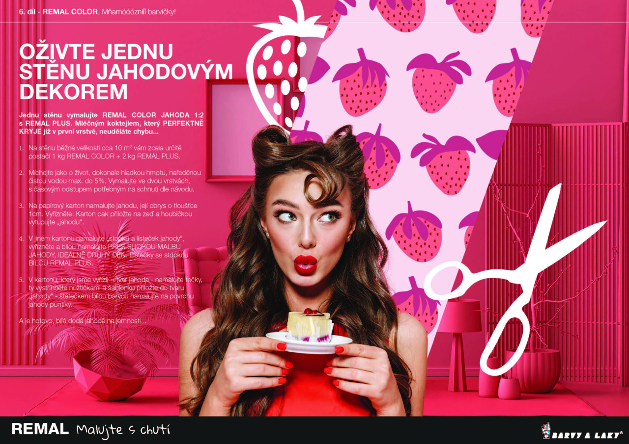Jednu stěnu vymalujte REMAL COLOR JAHODA 1:2 s REMAL PLUS. Mléčným koktejlem, který PERFEKTNĚ KRYJE již v první vrstvě, neuděláte chybu...