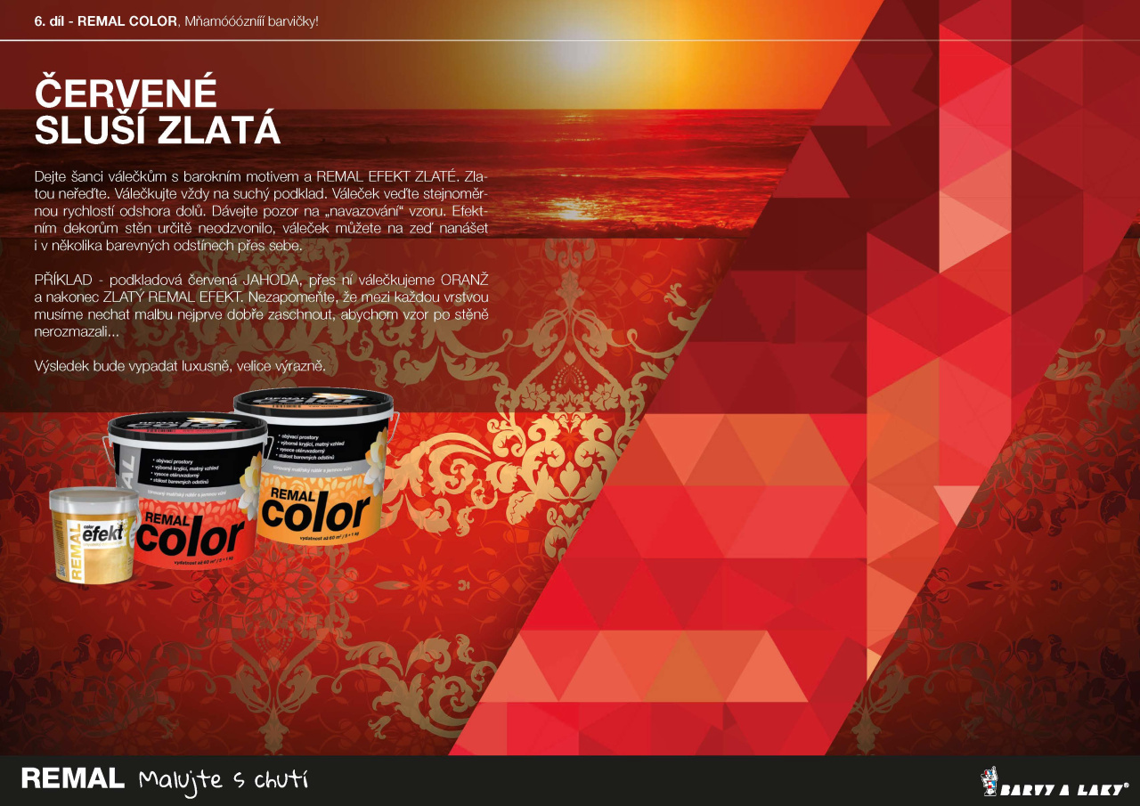 Dejte šanci válečkům s barokním motivem a REMAL EFEKT ZLATÉ. Zlatou neřeďte. Válečkujte vždy na suchý podklad. Váleček veďte stejnoměrnou