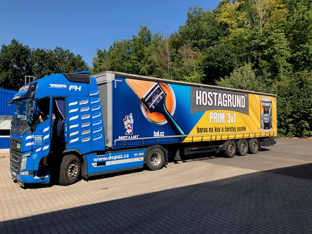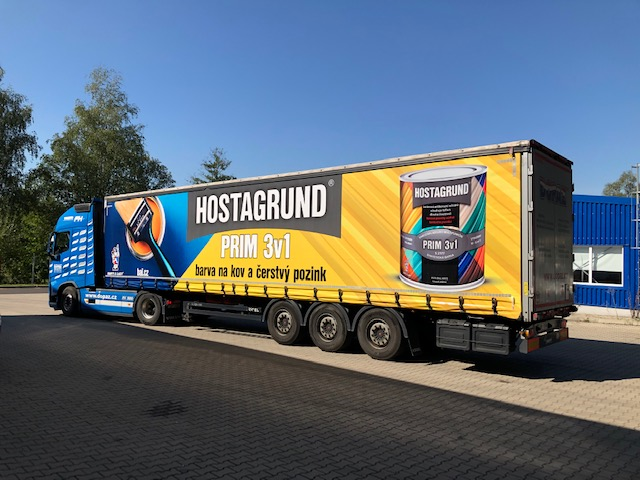 Jak bylo v létě slíbeno, tak se i stalo - od minulého týdne můžete na našich cestách potkat další nový kamion v "tričku" BARVY A LAKY - nese design brandů HOSTAGRUND PRIM 3v1 a REMAL EXPERT. Přejeme mnoho štastných kilometrů!
