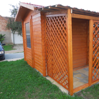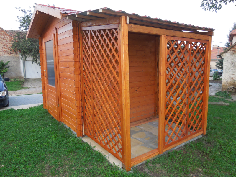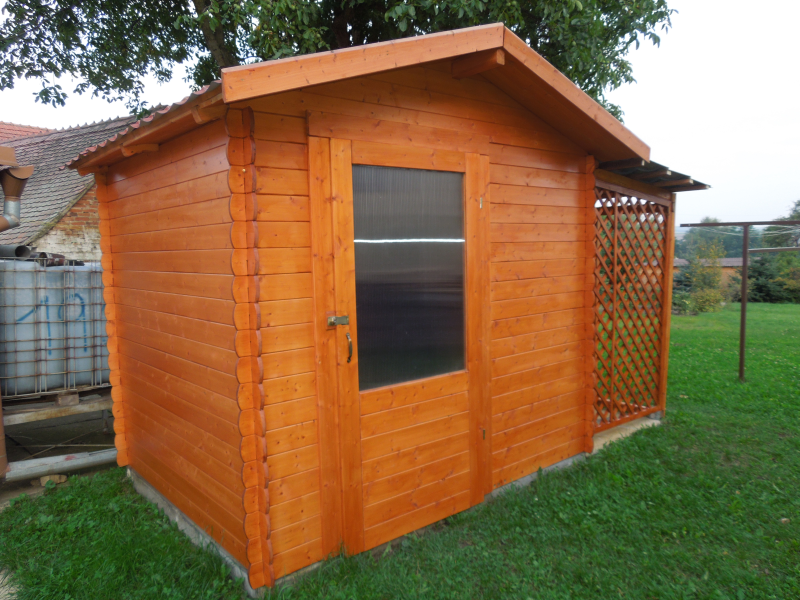 Při nátěru zahradního dřevěného domku s přístěnkem na dřevo byl použit náš výrobek