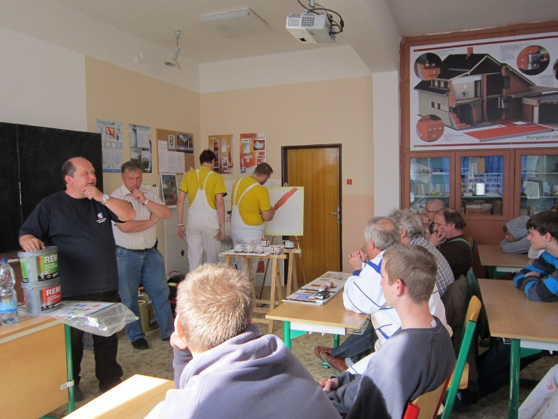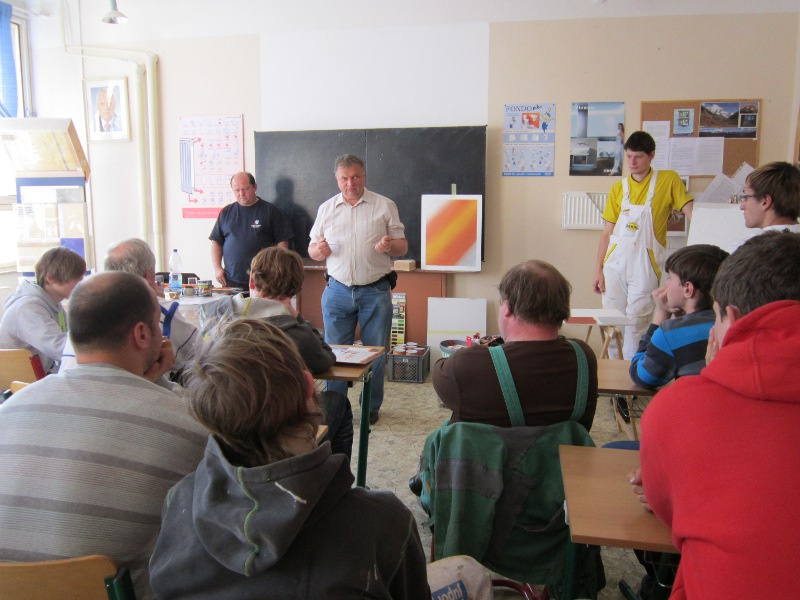 Novinkou bylo, že ukázky praktického použití dekorativních technik předváděli skoro stejně staří pracovníci, jako jsou žáci školy a kteří úspěšně ukončili učební obor malíř v loňském roce. I tento příklad by mohl být pro žáky motivující. I když přednáška trvala více než tři hodiny, dokázali žáky aktivně vtáhnout do diskuze vhodnými otázkami a hlavně drobnými odměnami za správnou odpověď. Přednáška byla přínosem také pro vyučující odborných předmětů.