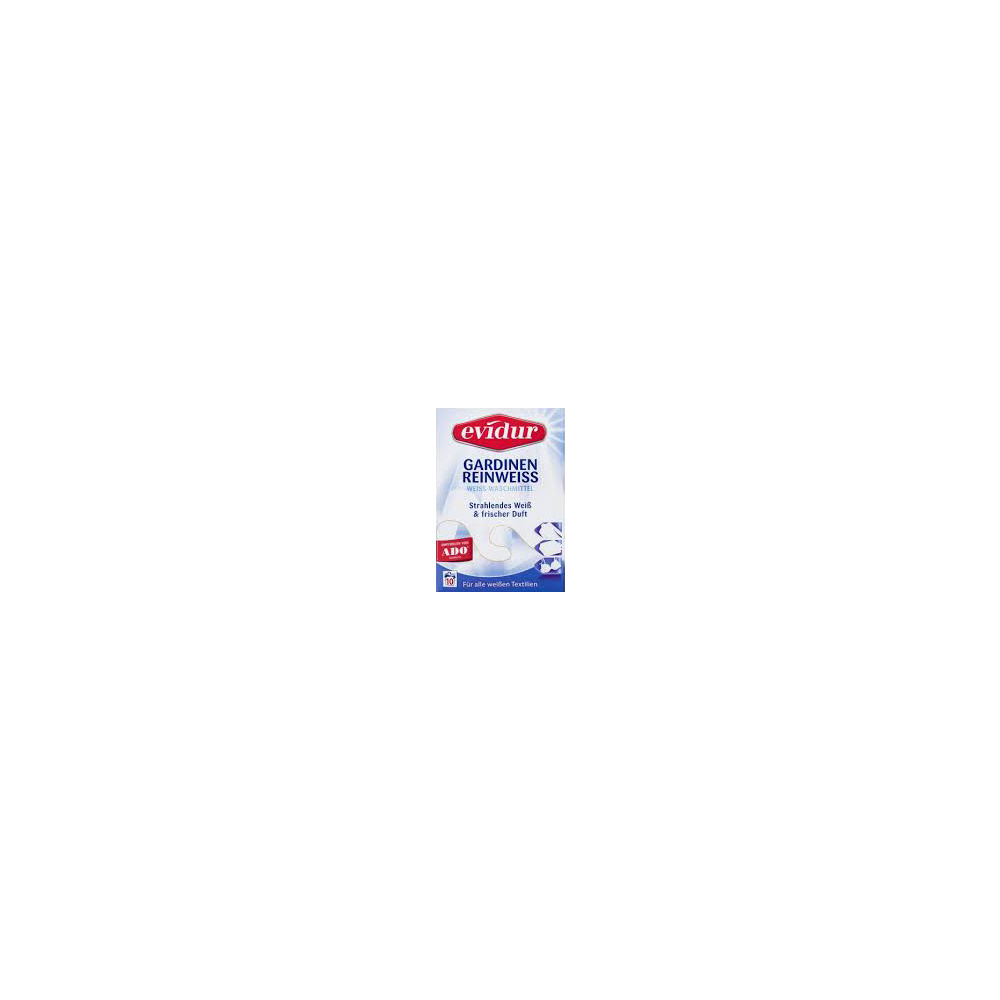 Evidur Gardinen Reinweiss je prací prášek pro bílé záclony a jemné tkaniny. Odstraňuje zašednutí, prach a nikotin a navrácí tkaninám jejich bělost již od 30 °C. Obsahuje rozjasňovače pro dlouhotrvající bělost. Balení 600 g vystačí na 10 praní.