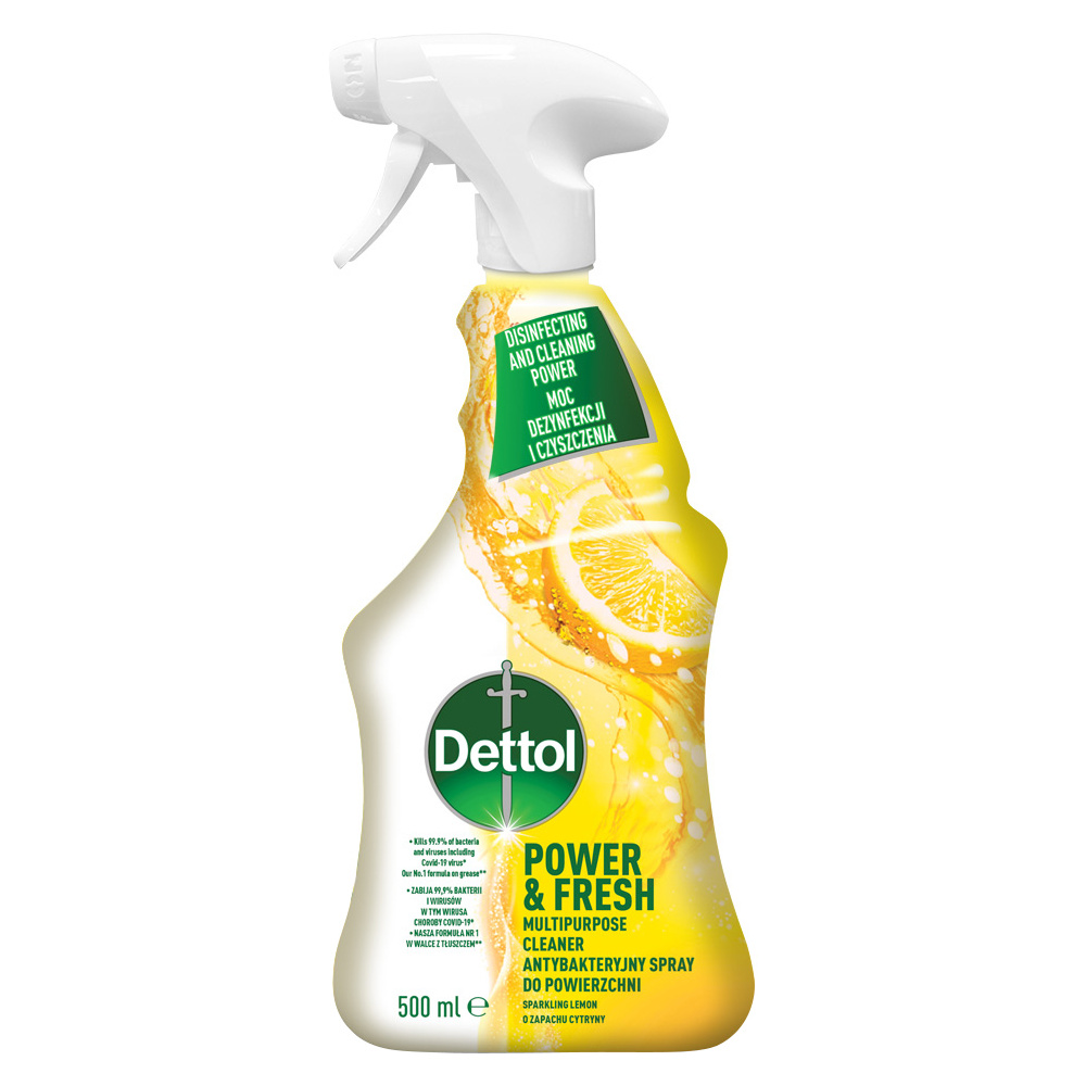 Antibakteriální univerzální čistič ve spreji Dettol Citron a Limeta s objemem 500 ml ničí 99,9 % bakterií a virů.