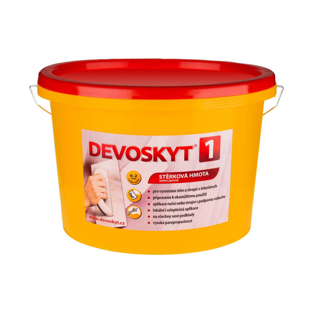 Devoskyt vnitřní stěrka je určen k povrchovým úpravám stěn a stropů v interiérech. Je připravena k okamžitému použití. Devoskyt je vynikající podklad pro malování, tapetování a veškeré dekorační techniky.