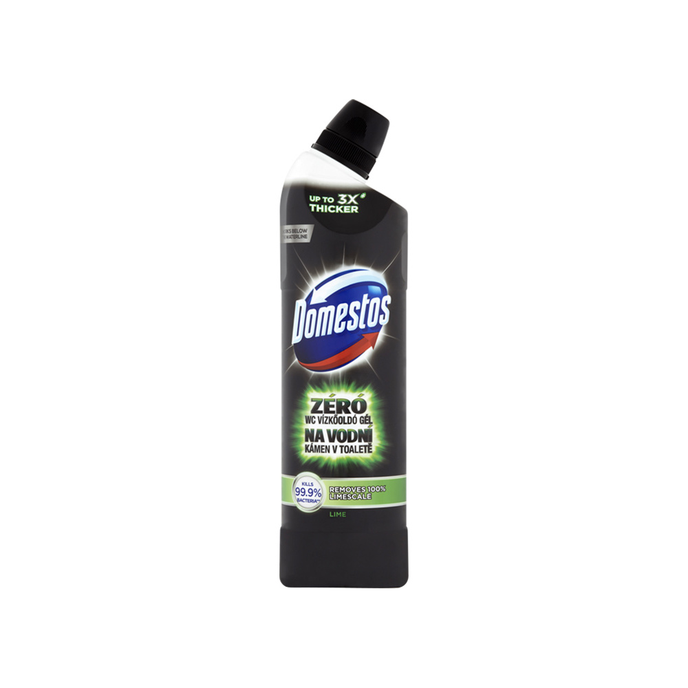 Domestos Zero Lime dokonale vyčistí vaši toaletu a spolehlivě ji zbaví vodního kamene. Domestos Zéró Lime intenzivně zabíjí bakterie v toaletě.