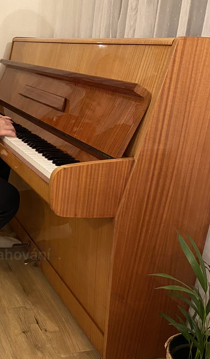 po odmaštění povrchu a případném jemném zbroušení můžete použít různé typy nátěrových hmot - emaily syntetické, polyuretanové případně i vodou ředitelné. Klavíry se dříve upravovaly polyesterovými nátěry, nyní nemám informace o používaných hmotách. Doporučuji obrátit se na odborníky, zabývající se renovacemi hudebních nástrojů.