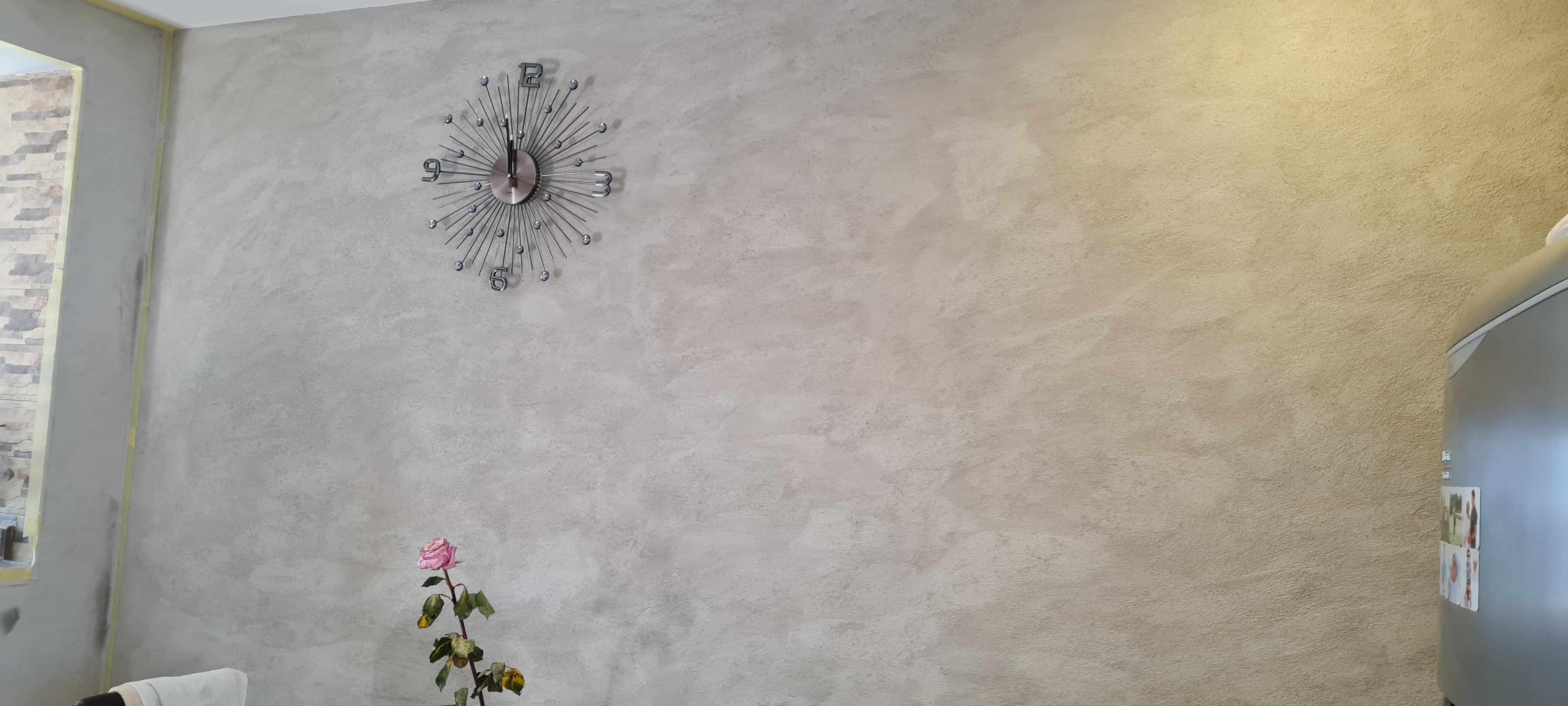 Pokud je stěrka už zalakována, tak by mohl být problém s adhezí dalších vrstev. Doporučil bych stěnu přebrousit, nanést Primacol Kontakt grunt a následně betonovou barvu Primacol.