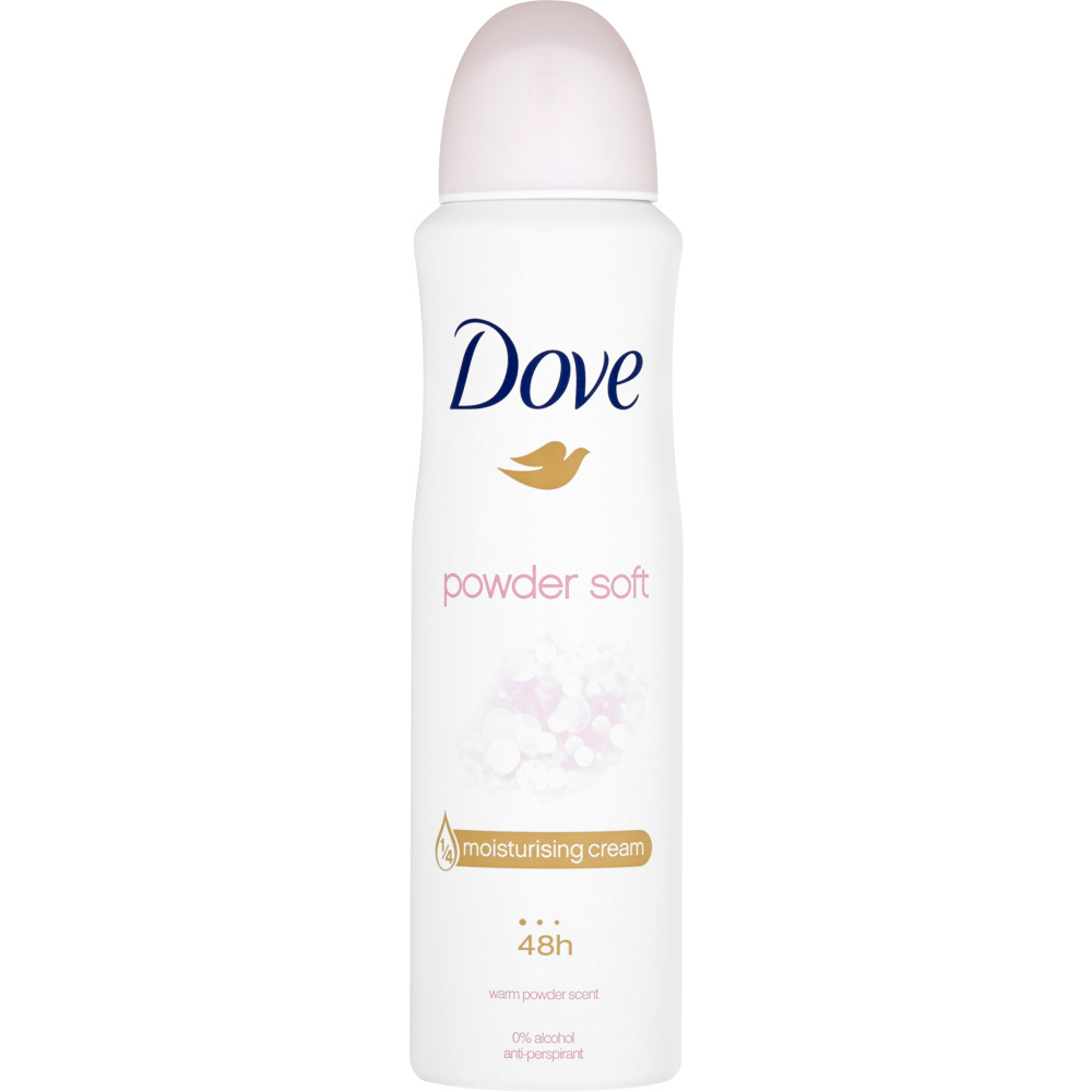 Antiperspirant sprej Dove Powder Soft se zklidňující vůní dětského pudru zanechá pokožku podpaží jemnou a suchou.