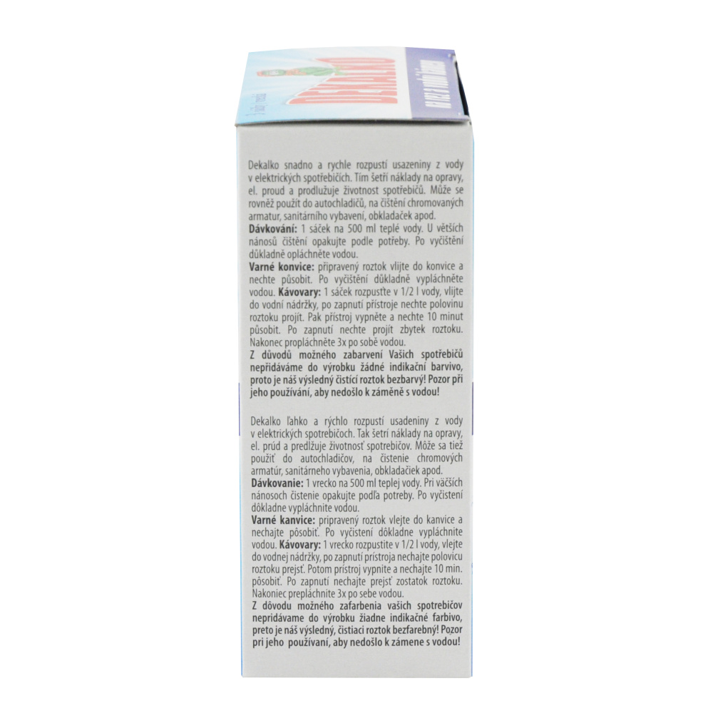 Snadno a rychle rozpustí usazeniny z vody v elektrických spotřebičích. Tím šetří náklady na opravy, elektrický proud a prodlužuje životnost spotřebičů.