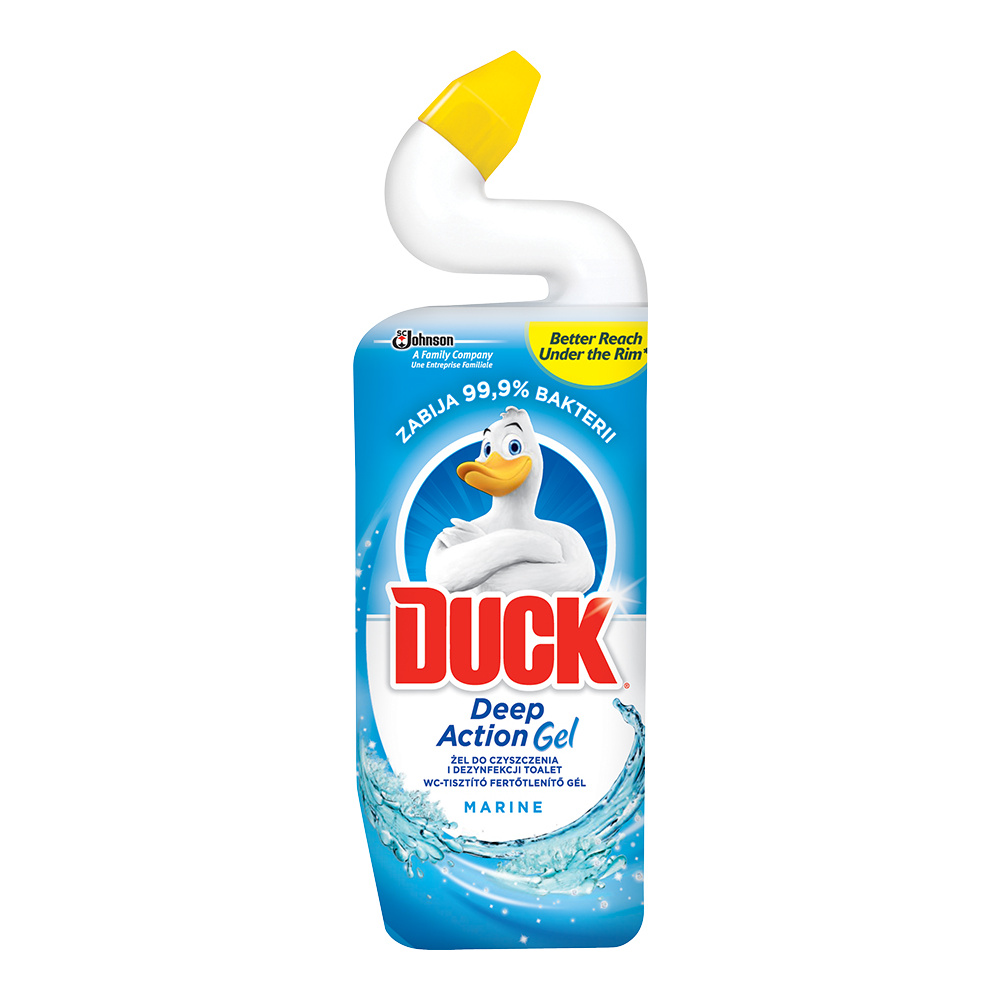 Duck tekutý čistič WC s příjemnou vůní moře, přípravek vyčistí WC mísu, odstraní vodní kámen a nečistoty. Snižuje nutnost čištění kartáčem a čistí nad i pod vodní hlavou, zaroveň eliminuje veškeré zápachy z toalety.
