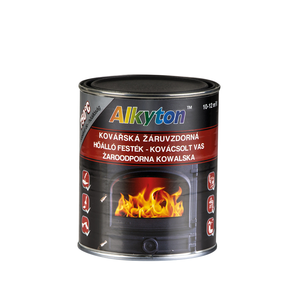 Rychlé a jednoduché použití, snadné a bezproblémové obnovení nátěru, vysoká tepelná odolnost do 750 °C, ředitelná S6005, aplikace štětcem, válečkem nebo stříkáním, atraktivní černošedé provedení kovářské barvy.
