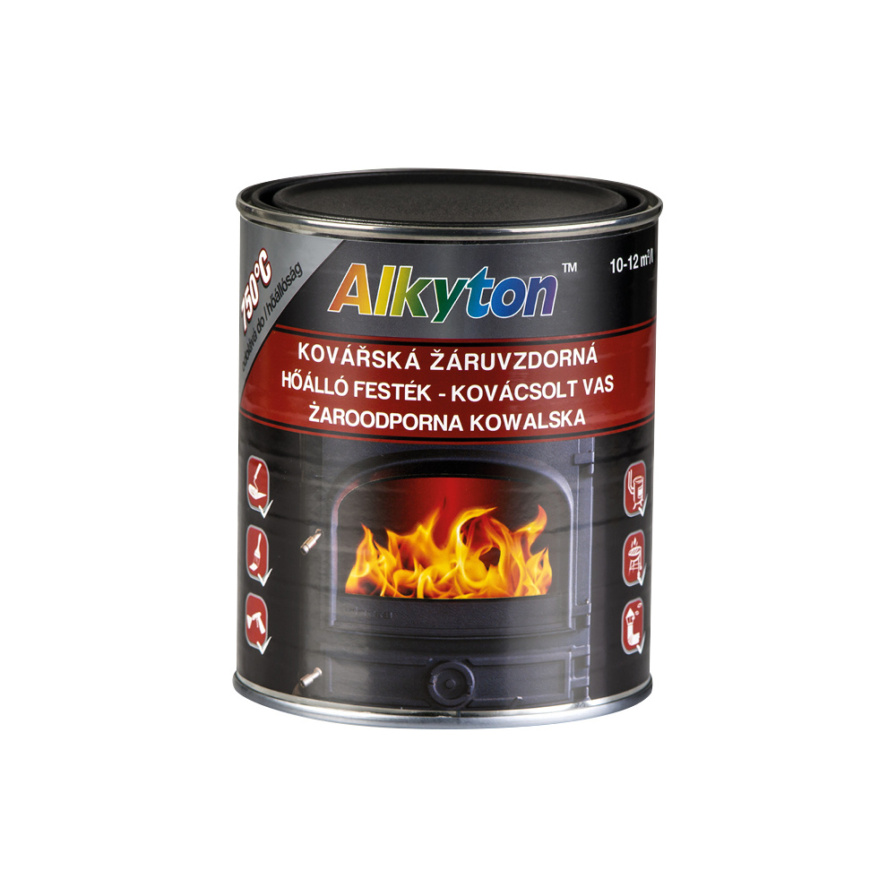 Rychlé a jednoduché použití, snadné a bezproblémové obnovení nátěru, vysoká tepelná odolnost do 750 °C, ředitelná S6005, aplikace štětcem, válečkem nebo stříkáním, atraktivní černošedé provedení kovářské barvy.