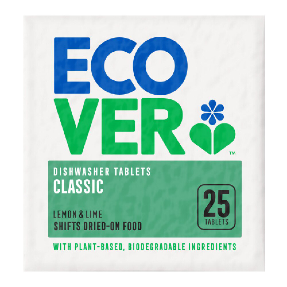 Ecover tablety do myčky účinně myjí nádobí, zbavují jej mastnoty a zanechávají nádobí zářivě lesklé. Obsahují složky na rostlinné a minerální bázi, nezatěžují tedy životní prostředí a jsou rychle a zcela biologicky odbouratelné.