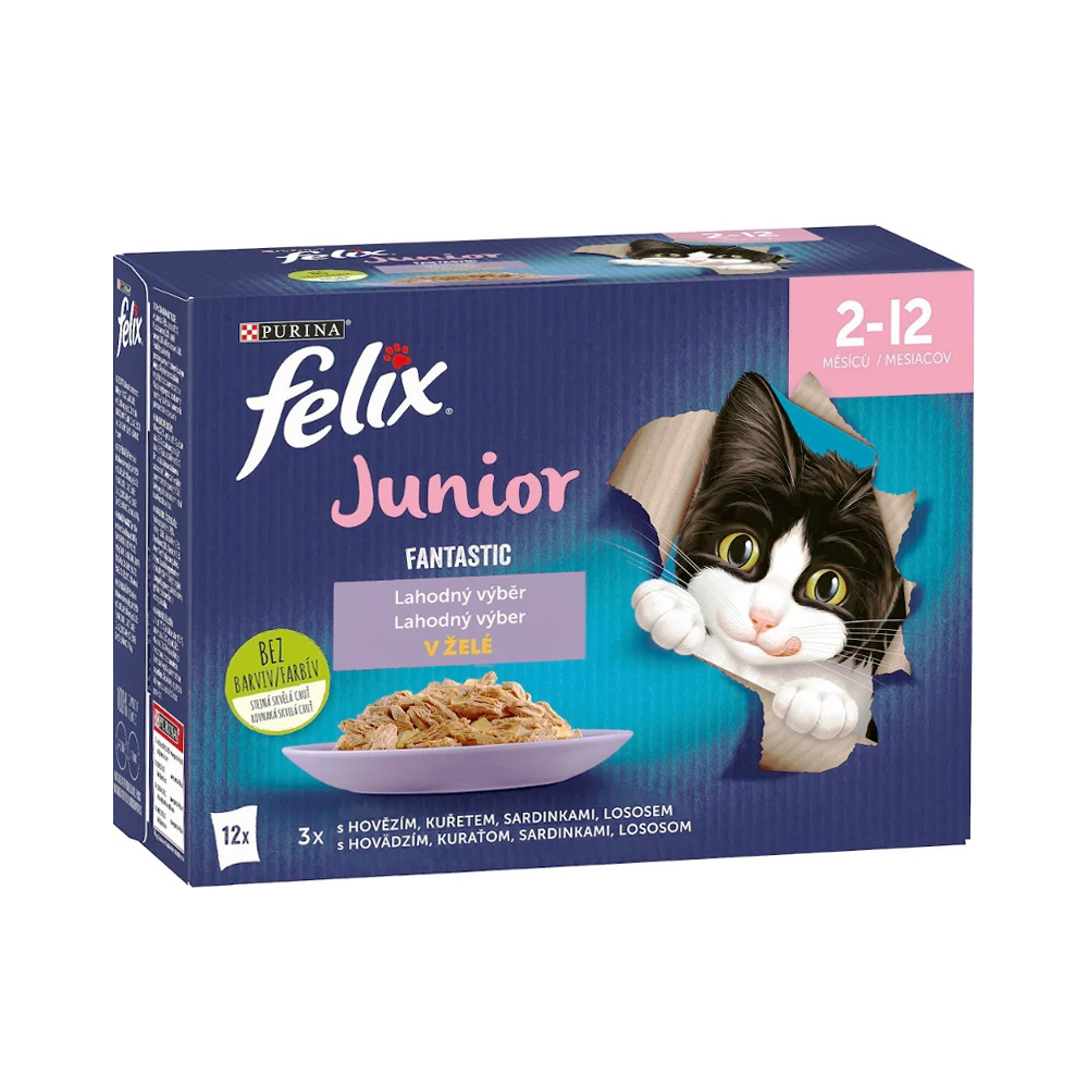 Felix Fantastic Junior kapsičky pro kočky výběr v želé, 12× 85 g