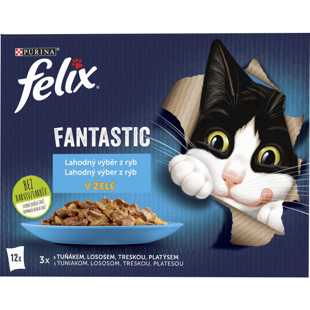 Felix Fantastic kapsičky pro kočky s lososem, platýsem, tuňákem a treskou, 12 × 85 g