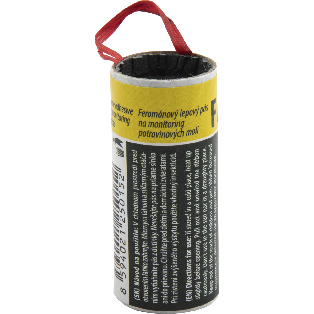 Oboustranně lepící pás papíru opatřený feromonem, který zaručuje účinný odchyt 4 druhů samců potravinových molů.
