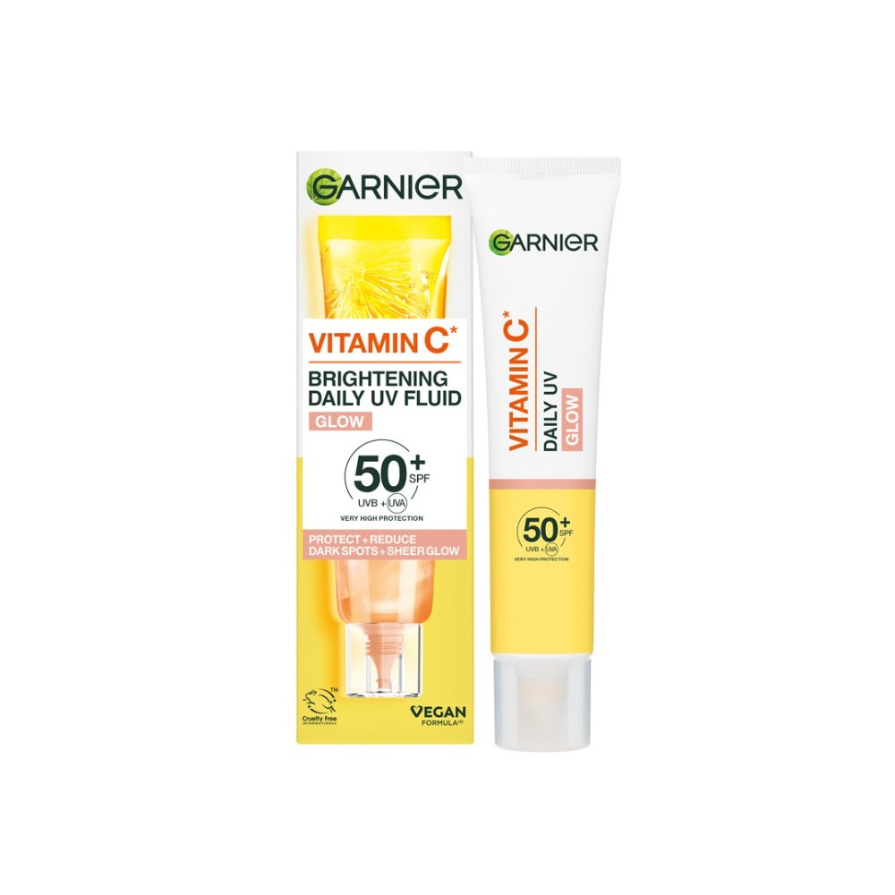 Garnier Skin Naturals Vitamín C - glow SPF 50+, 40 ml. Chrání pleť před UV, UVB, UVA zářením. Denní rozjasňující fluid s vitamínem C. Pomáhá chránit před vznikem pigmentových skvrn.