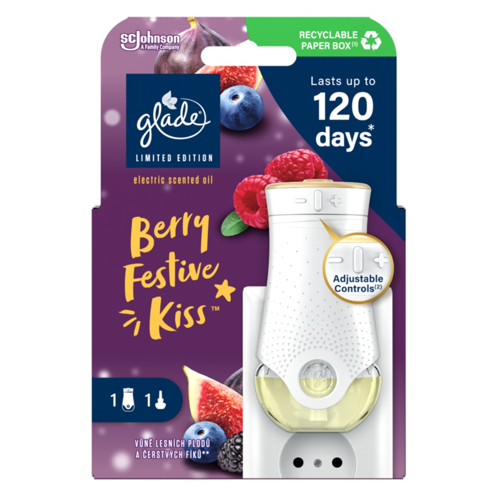 Glade Electric Berry Festive Kiss je elektrický osvěžovač vzduchu s výměnnou náplní, který provoní váš domov sladkou a zároveň svěží sváteční vůní lesních plodů a šťavnatých malin s jemným nádechem květin a dřeva.