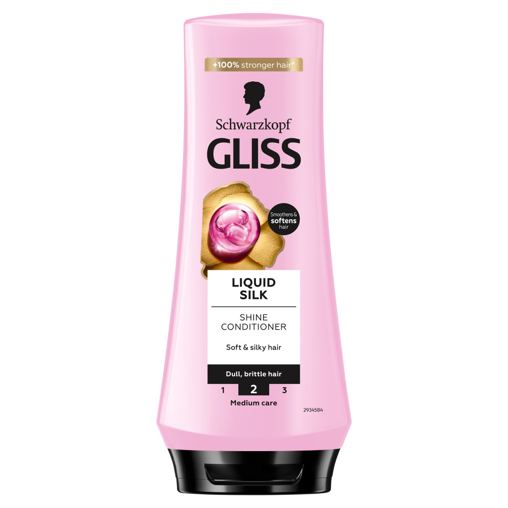 Kondicionér Gliss Liquid Silk s ceramidy + hedvábím pro matné, lámavé vlasy. Jemné a hedvábné vlasy a perfektní rozčesatelnost. Smývatelný.
