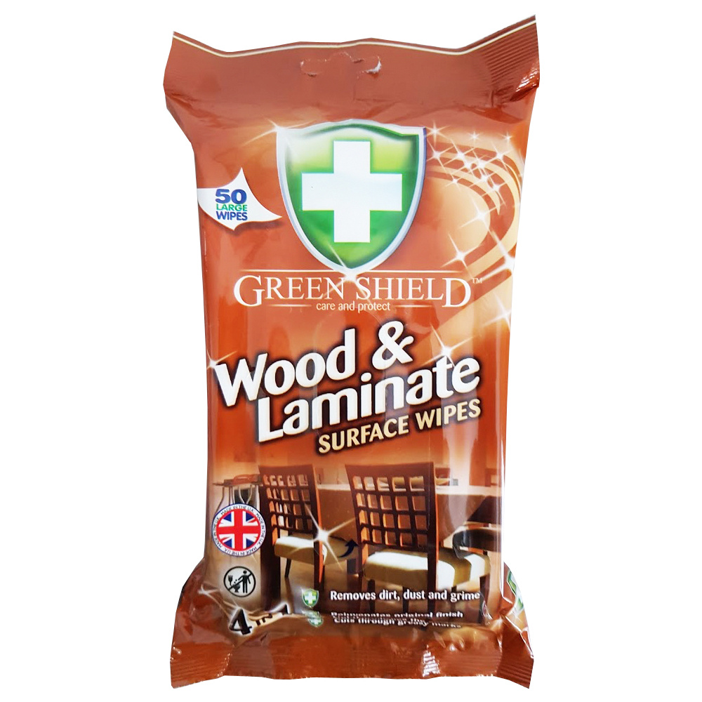 Vlhčené ubrousky Green Shield jsou určené na dřevo a lamináty. Odstraňují nečistoty, prach a mastnotu