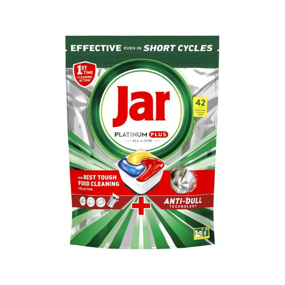 Kapsle Jar Platinum Plus zanechávají nádobí čisté jako nové, zaručují nejlepší čisticí účinky od Jaru, a dokonce pomáhají odstraňovat zašedlost vznikající časem a obnovují původní lesk nádobí.