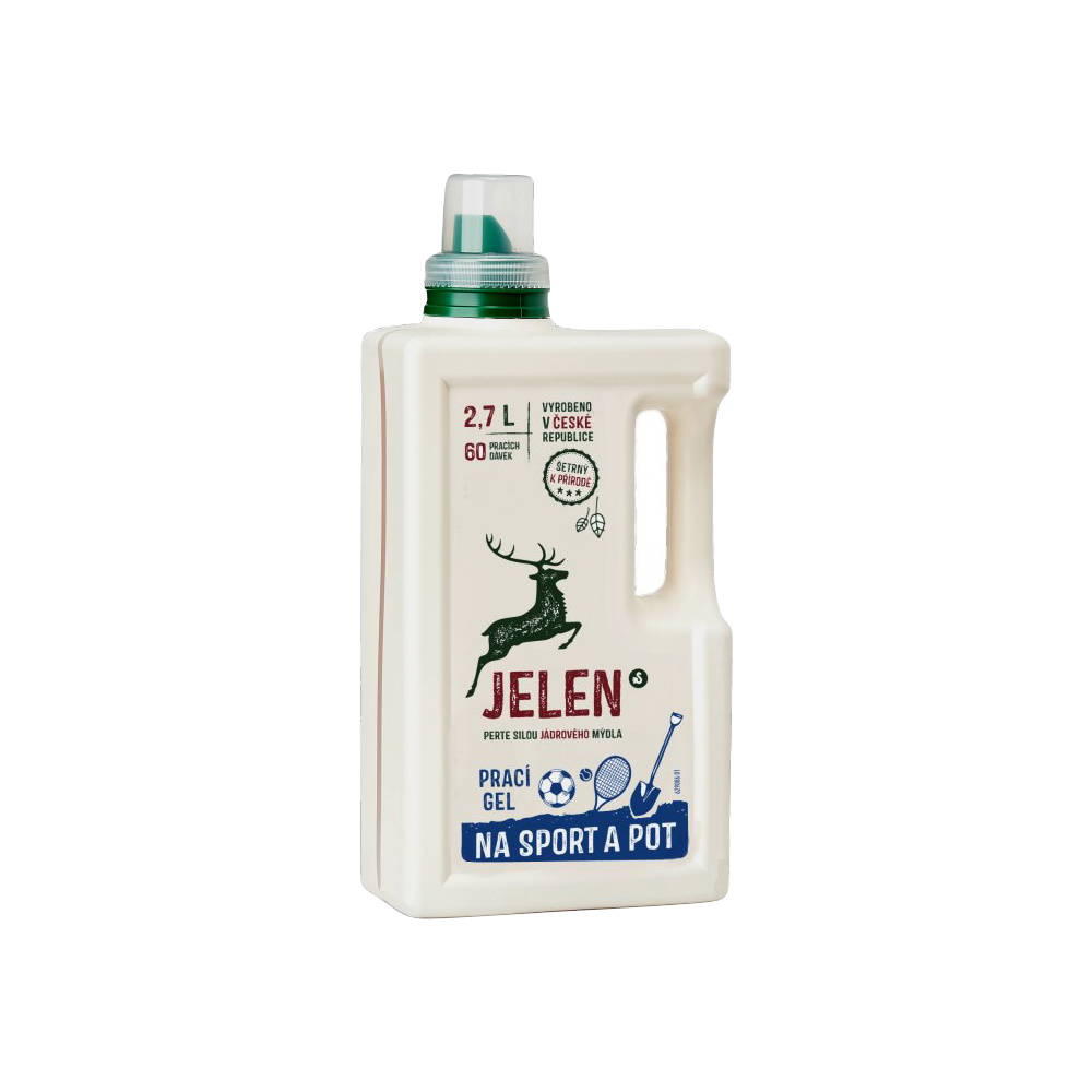 Obsahuje pohlcovač pachu, který spolehlivě odstraní z prádla veškerý zápach. A tak ikdyž zrovna zapomenete propocené oblečení týden vyndat z tašky, Jelen na sport a pot si s tím poradí.
