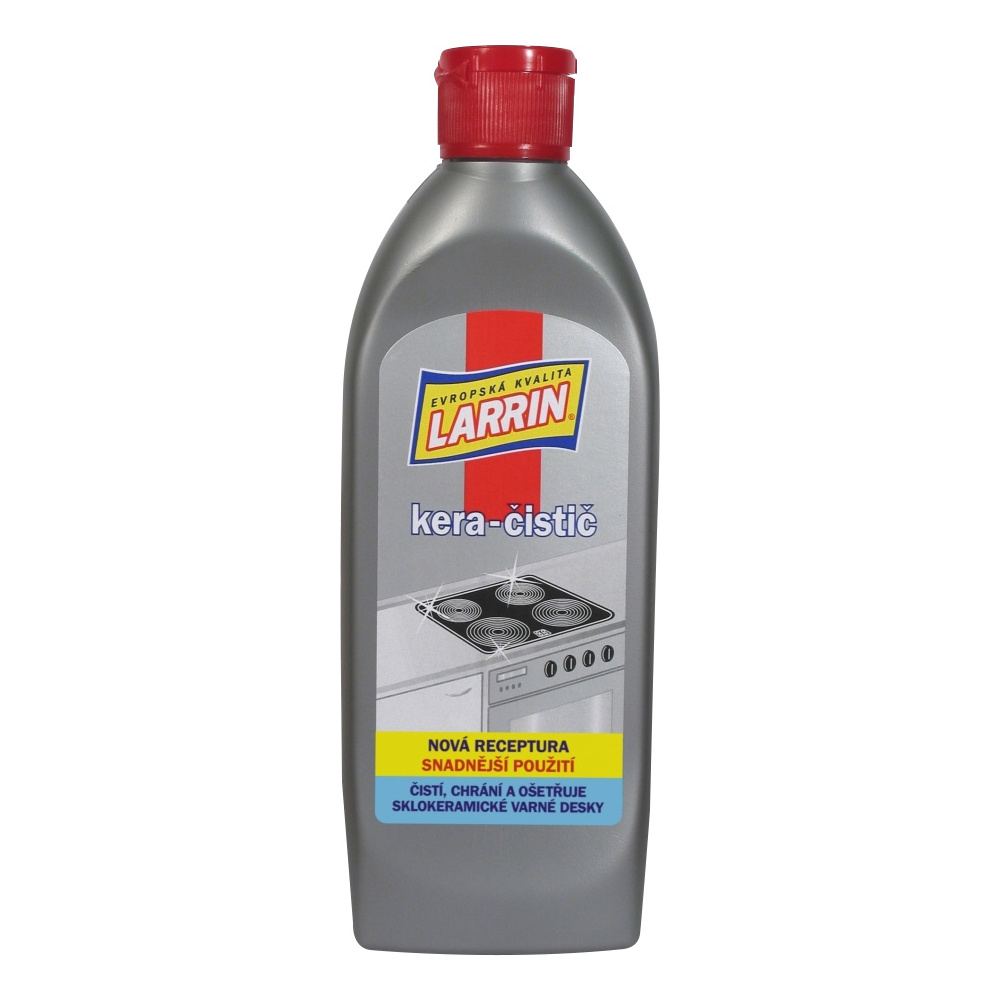 Larrin kera-čistič 200 ml na sklo-keramické desky má novou recepturu pro snadnější použití, důkladně čistí, chrání před poškozením a ošetřuje. Pravidelné používání usnadní údržbu a zachová desku stále jako novou.