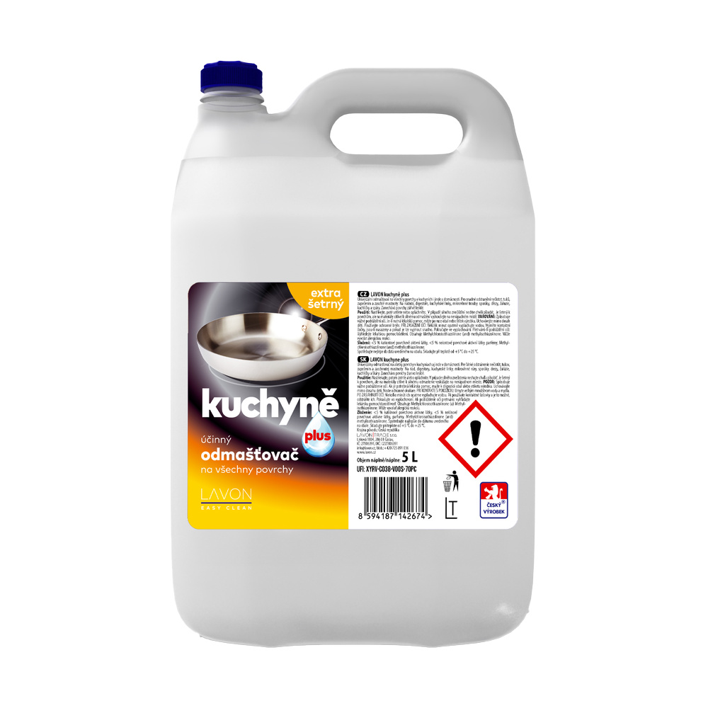 Univerzální šetrný odmašťovač na všechny povrchy v kuchyních i jiných místech v domácnosti.