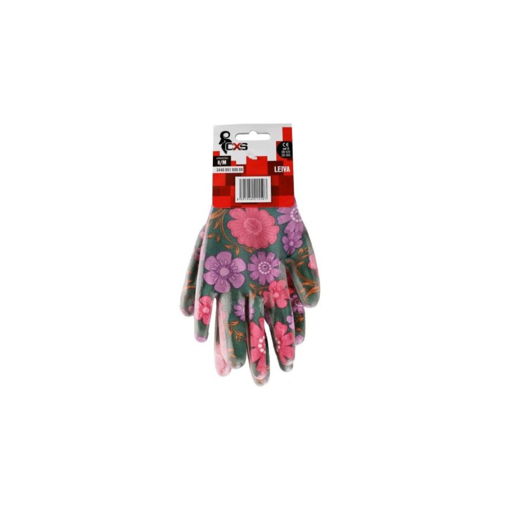 Leiva pracovní rukavice máčené v polyuretanu s květinovým potiskem, velikost 8, 1 pár