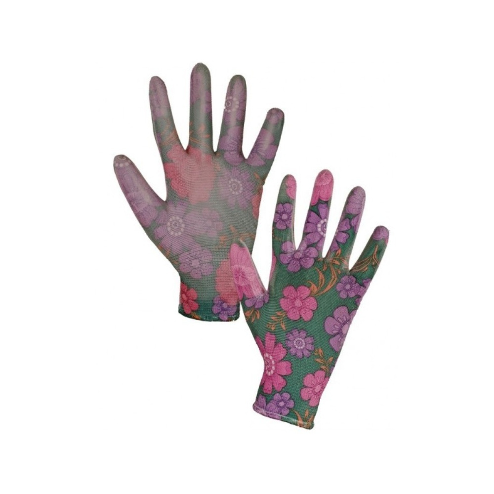 Leiva pracovní rukavice polomáčené s květinovým potiskem, velikost 7, 1 pár