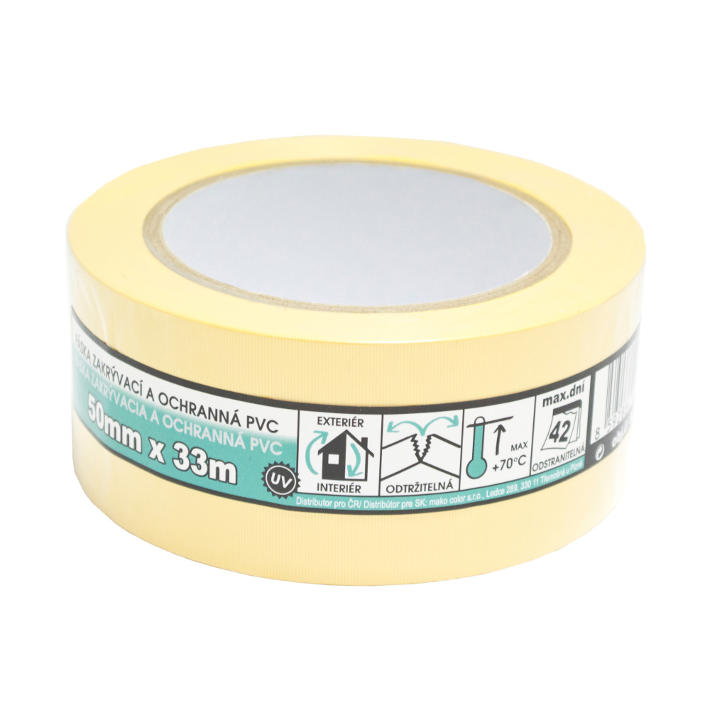 Mako zakrývací stavební PVC lepicí páska, štukatérská, lepí 6 týdnů, šířka 50 mm, délka 33 m