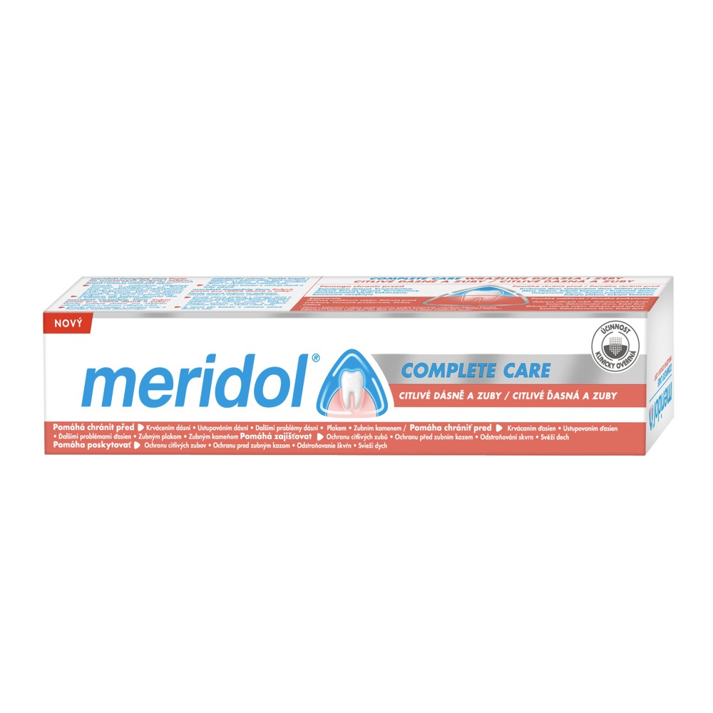 Zubní pasta Meridol Complete Care na citlivé zuby a dásně účinně bojuje proti bakteriím zubního plaku, které mohou způsobovat problémy s dásněmi a zápach z úst. Citlivé zuby zaslouží šetrnou péči, která přinese úlevu okamžitě.