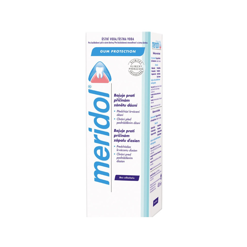 Ústní voda Meridol Gum Protection byla odborně vyvinuta tak, aby působila proti hlavní příčině krvácení a podráždění dásní a pomáhala udržet jejich vitalitu. Díky dvojímu aktivnímu složení se zinkem a aminfluoridem účinně ničí bakterie zubního plaku.