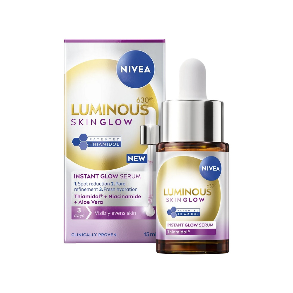 Nivea Luminous Skin Glow v balení 15 ml je kompaktní intenzivní sérum navržené pro cílenou péči o rozjasnění pleti.